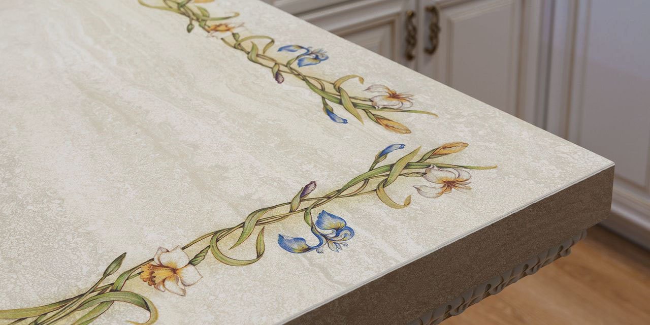 Столешницы Ceralan изготавливаются с подложкой из экструдированного пенополистирола. По длинным сторонам столешница имеет усиление в виде специального металлического профиля, который клеится вплотную к канту между подложкой и кантом столешницы.