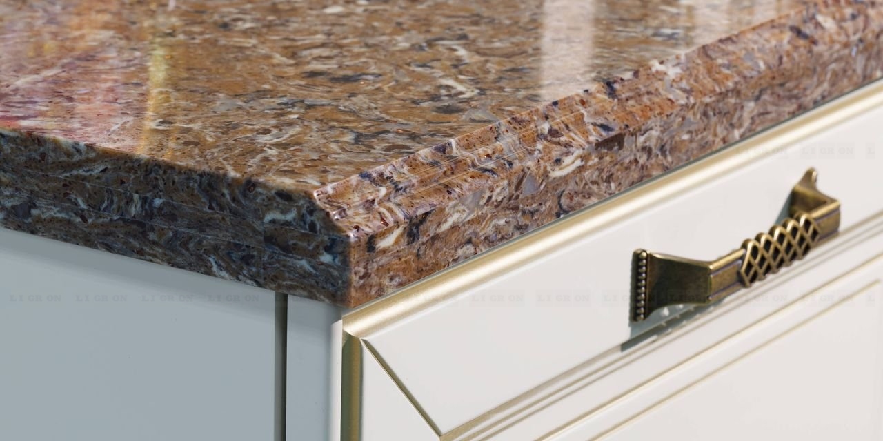 Поэтому имеются ограничения на изготовление столешниц с радиусами. Однако, LIGRON умеет обрабатывать кварцелан и изготавливать из него столешницы и стеновые панели с фигурными классическими профилями.