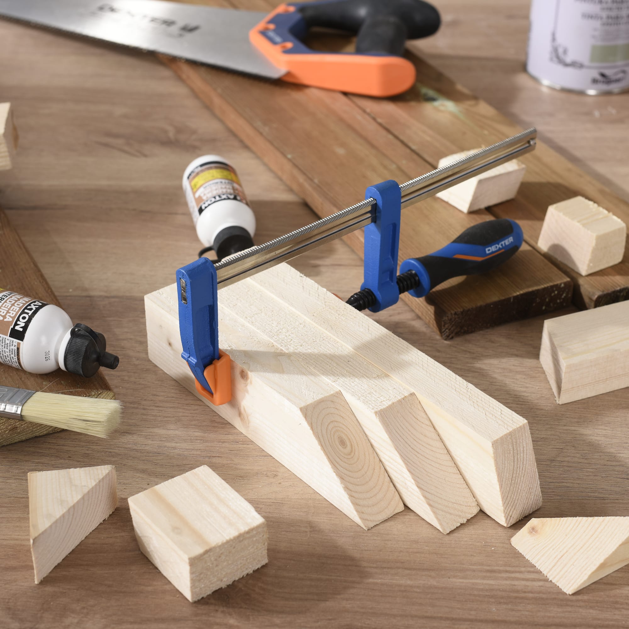 F-образная струбцина Dexter обеспечивает прочное крепление деталей при различных видах обработки и сборки. Идеальный инструмент для мастеров, требующий точности и надежности.