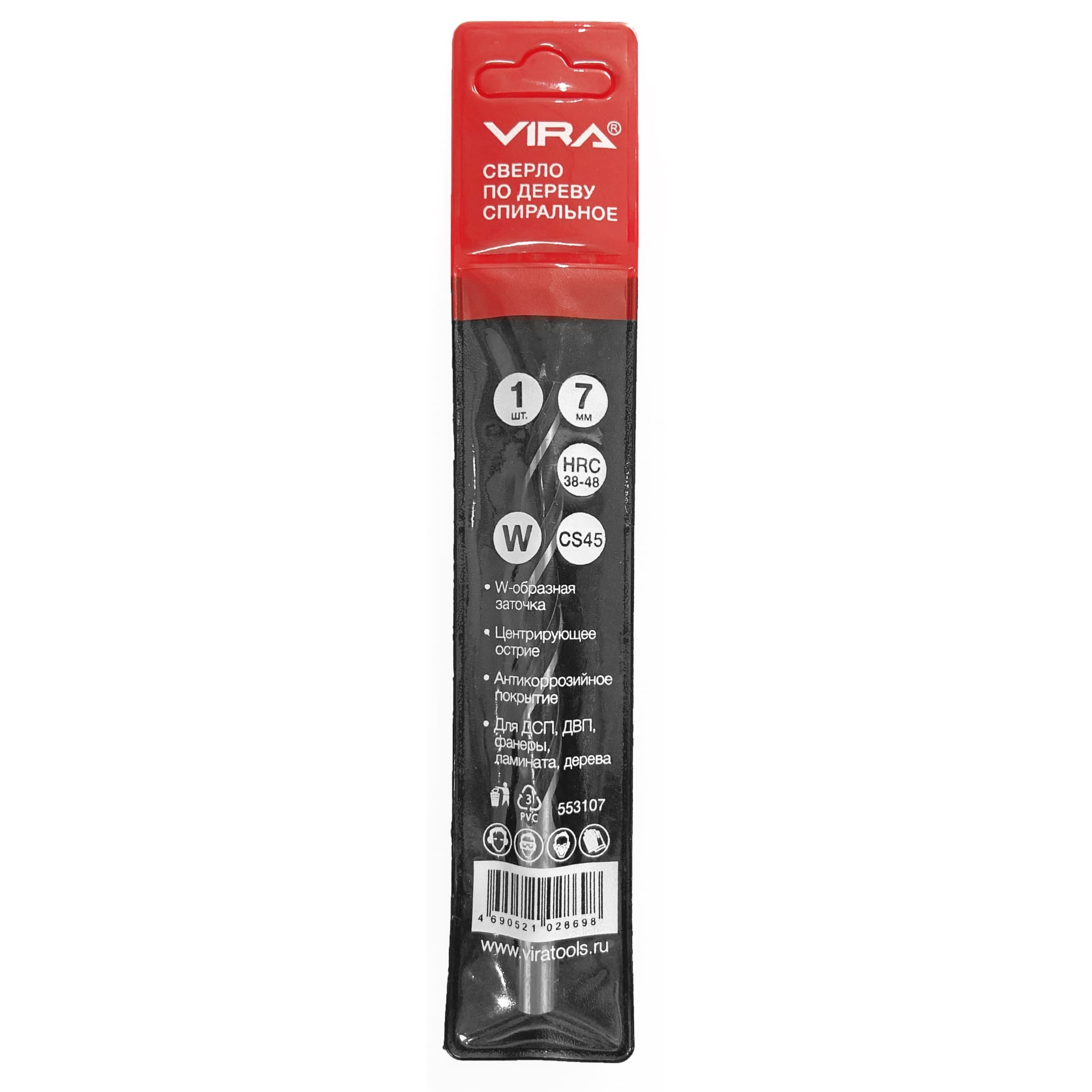 Сверло VIRA по дереву 7 мм спиральное для точного сверления 82909850 STLM-0037850