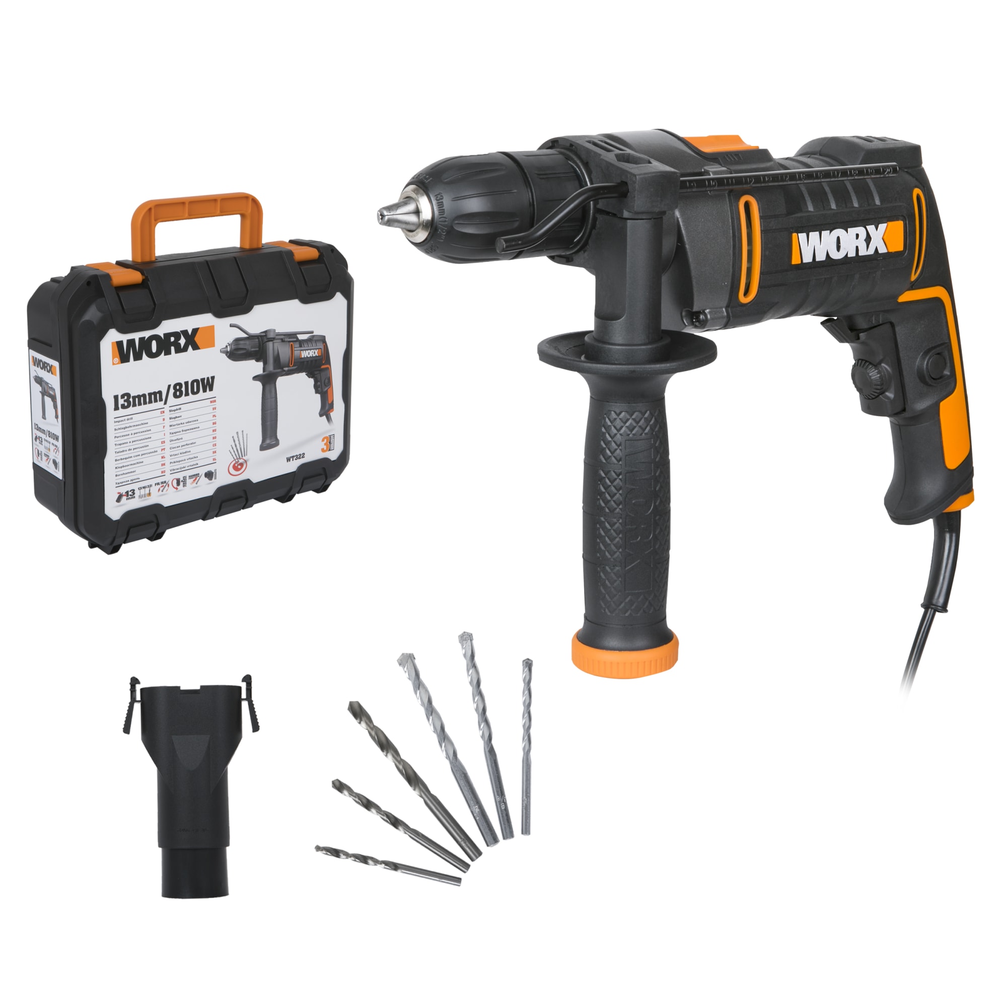 Ударная дрель WORX WT322 с питанием от сети 230В обеспечивает надежное выполнение сверлильных работ любой сложности. Инструмент мощностью 810Вт справляется с различными материалами благодаря продуманной конструкции и функциональным возможностям.